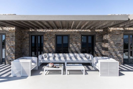Villa Carmen is a newly constructed masterpiece envisioned by world-renowned architect John Pawson. Set on a 6,100 sqm landscaped estate with direct access to the sea, the villa blends minimalist stone-clad geometry with the brilliance of the Aegean light. Its secluded setting offers uninterrupted views across the shimmering waters to Paros Island, capturing the essence of Cycladic elegance and tranquility. Designed for refined summer living, the villa features expansive outdoor spaces, including an 80 sqm black-tiled pool and a 13-meter pergola for shaded lounging and dining. Indoors, the master suite and two guest bedrooms, all with en-suite bathrooms, create a serene retreat. A separate guest double on the lower level ensures comfort and privacy, completing an exceptional residence at the heart of the Cyclades.