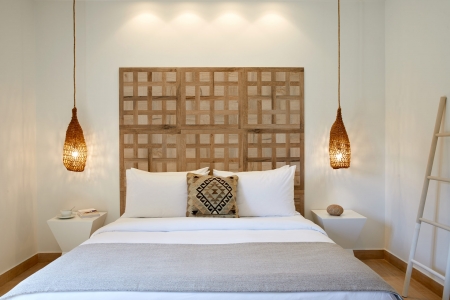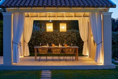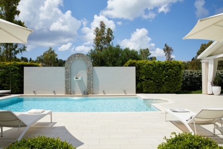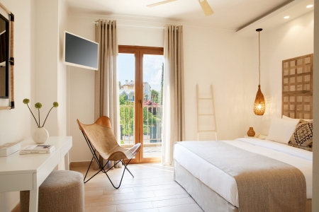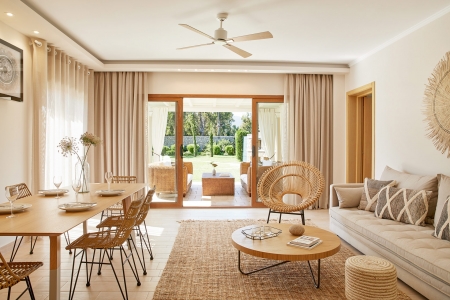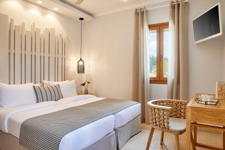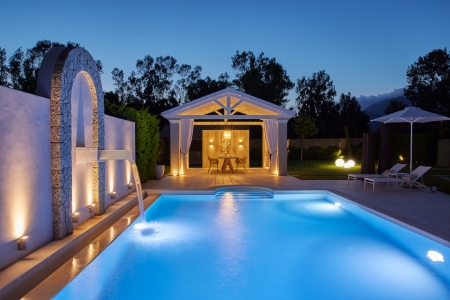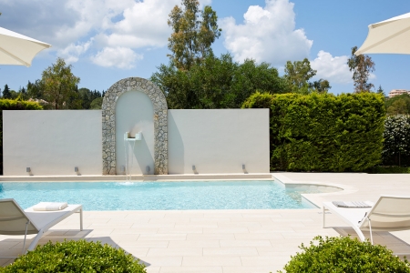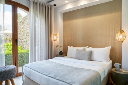 Completely surrounded by a private garden of 1300 square meters, the superb Villa Pierre Loti boasts an area of 124 square meters, consists of three bedrooms and can accommodate up to 6 persons. The ground floor features a double bedroom with ensuite bathroom, a fully equipped kitchen, a living room, a dining area and a WC. The upper floor has two more bedrooms with ensuite bathrooms and private balconies. Every room has a plasma TV, with DVD and satellite channels, a direct phone line, a fax machine, an electronic safe and complimentary Wi-Fi internet access.The sitting area opens to the outdoor terrace, the garden and the private pool. There are sun beds and umbrellas, as well as a gazebo with a dining table for 6 people, an outdoor BBQ, a shower and a parking space for two cars. Villa Pierre Loti is about 120 meters from the beach of Dassia following a small private road and from the beach of Aghios Nikolaos following the municipality road.