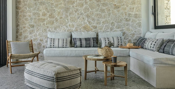 Villa Trust is a 75sqm luxury villa featuring two bedrooms, a living room with kitchen and two bathrooms one of them en suite. This chic villa can host up to 6 people. The stylish interiors connect with the outdoors with floor to ceiling windows giving the sense of a unique area leading to the private infinity swimming pool. Your comfortable sleep is guaranteed with beds from Coco Mat.