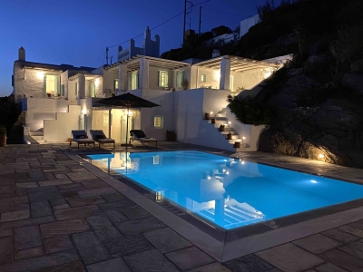 Villa Amelie is a breathtaking, elegant villa located ideally in the area of Agia Sofia, offering exceptional views of the Aegean Sea and its colorful sunsets. The setting is totally private and serene, offering luxurious and high-end accommodation.