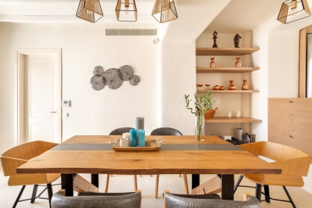 The main part of the property consists of two Maison’s (Grand Maison & Maison) with separate entrances, individual living rooms and kitchens, offering direct access to the pool area with outdoor lounge and dining area. The lower part of the villa has two beautiful guest houses, fully autonomous. With four master bedrooms, one semi-double bedroom, one single bedroom and two guest houses, the villa offers the ideal space distribution for family or friends who wish to create memories together while enjoying