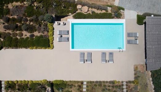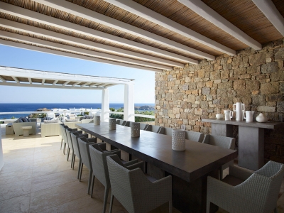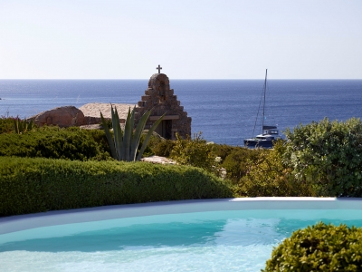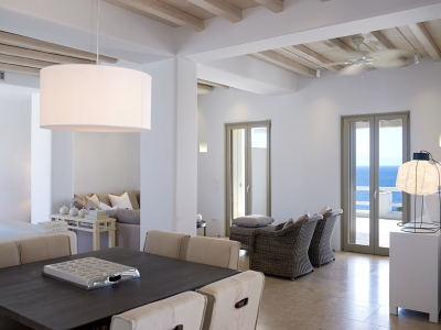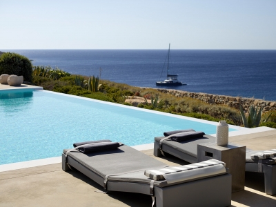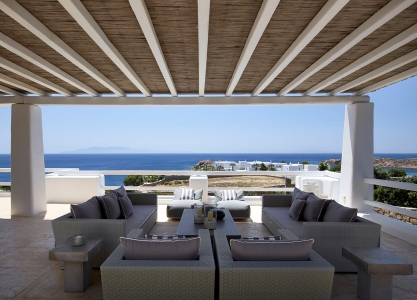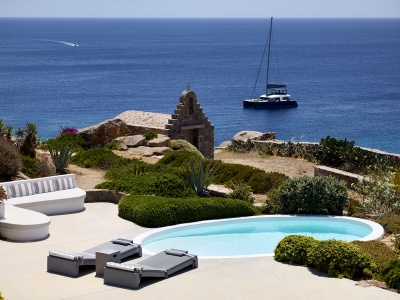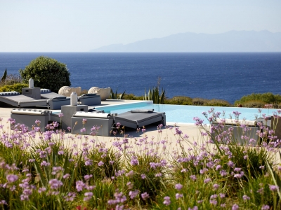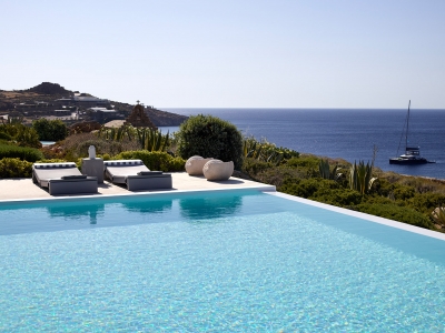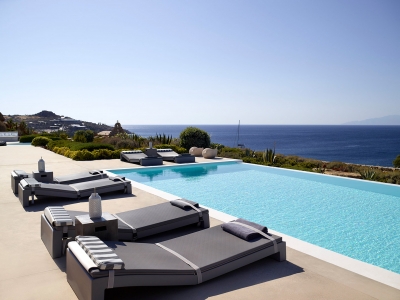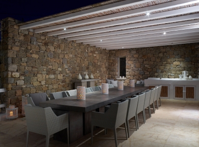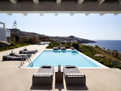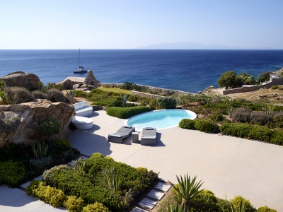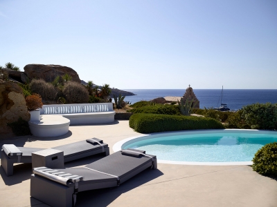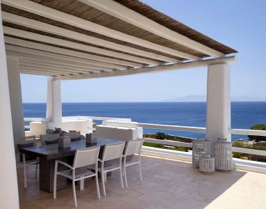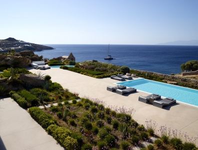 The extensive grounds with their walkways, surrounding the villa, have been landscaped in such a way as to allow privacy and seclusion either in the "infinity pool" with magnificent sea views or to the mini pool which is ideal relaxation spot for the grownups or playground for the little ones. The spacious outdoor facilities, including BBQ, can form a unified surrounding ideal for partying, weddings or other similar activities demanding large gatherings.