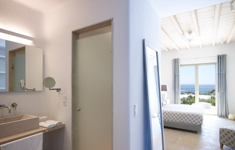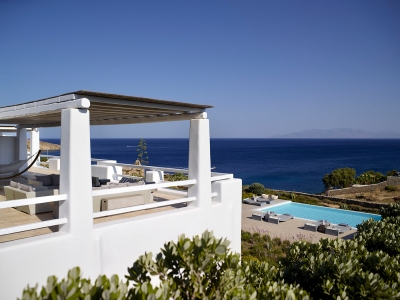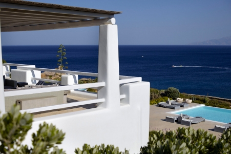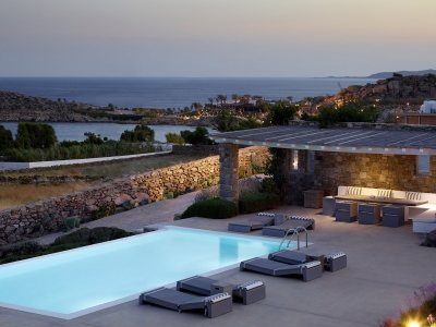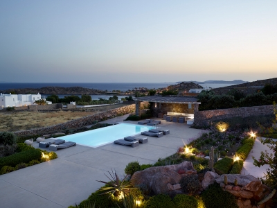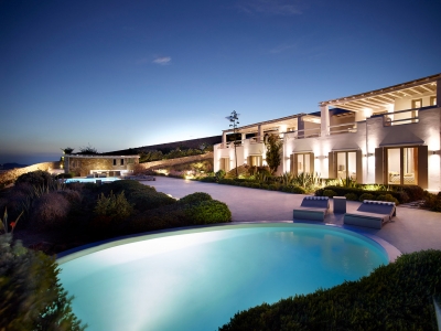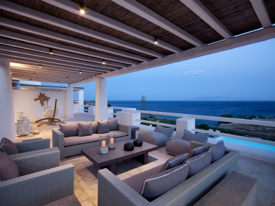 Villa Devret is an exceptionally unique property located at the Southern part of Mykonos, overlooking the island of Paros with stunning views over the Aegean sea and oriented towards the famous beach of PARAGA and the island of Paros and Antiparos, as well as the villa complex’s secluded private bay.