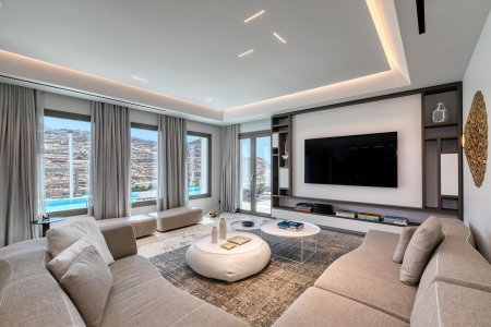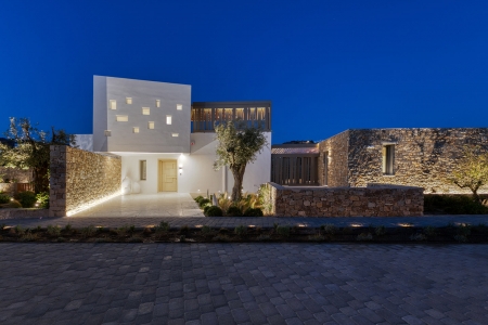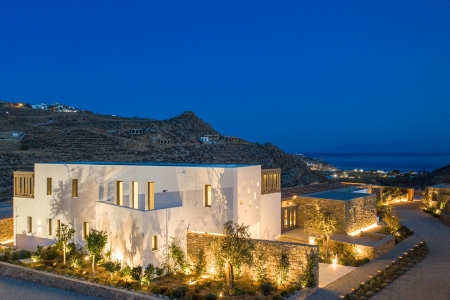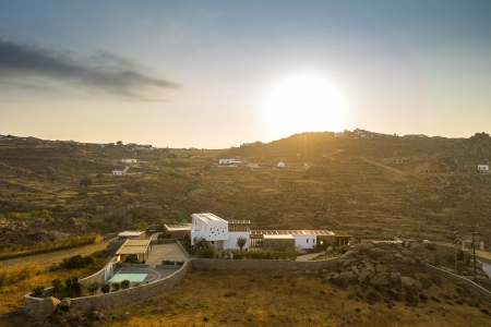 Built on a hill, only a few miles from Chora, Mykonos capital, the estate overlooks Paradise Beach; one of the most beautiful beaches on the island, with crystal clear blue-azure waters and thin golden sand.