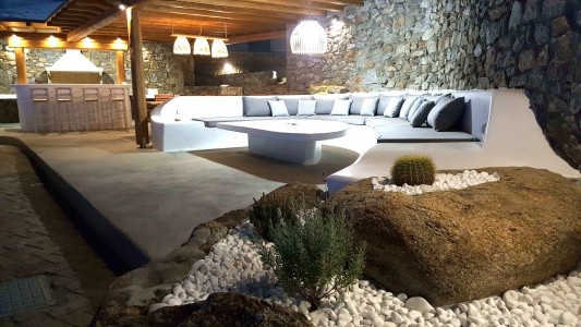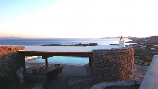 Villa Felicia was constructed in one of the most privileged areas of Mykonos. It is in the south side of the island with views over Naxos, Paros, sacred Dilos and the south coast line of Mykonos.