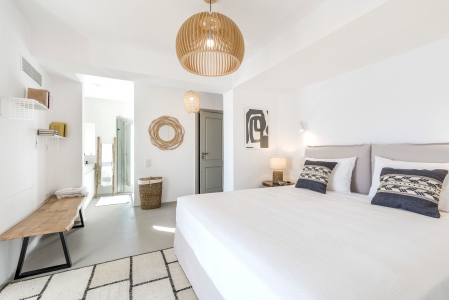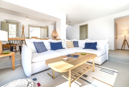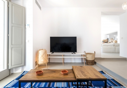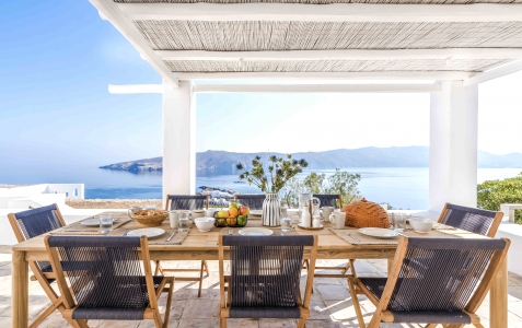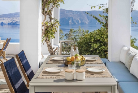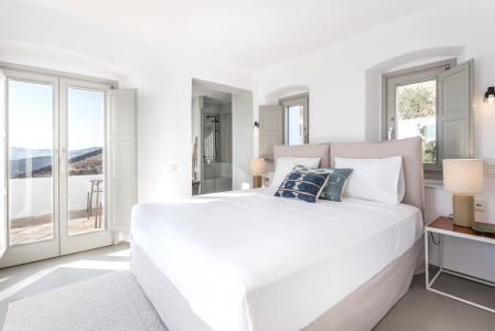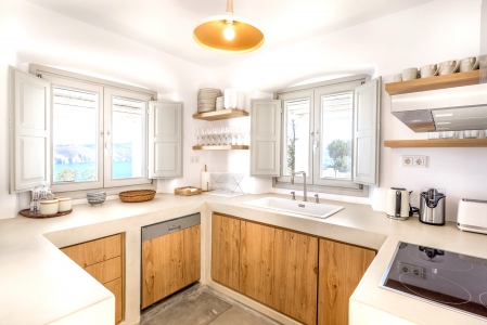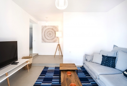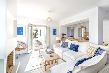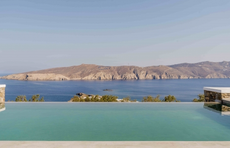 Villa Festive is situated on a hillside above Agios Sostis beach, a privileged location which provides an ultimate privacy. It offers its guests an unobstructed sea view of Panormos bay and Agios Sostis beach and within a 2-minute drive they can enjoy the crystal-clear waters of the beach.