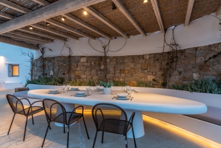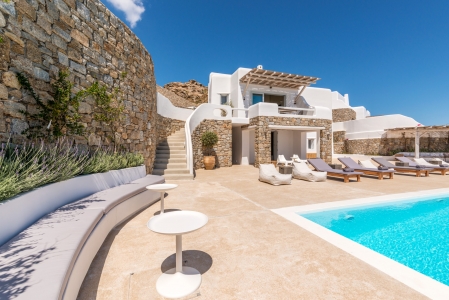 Villa Gusto is a brand new 250sqm villa and enjoys some of the island’s most impressive views, overlooking Kalo Livadi beach and stretching across the Aegean blue waters all the way to neighboring Naxos island.
