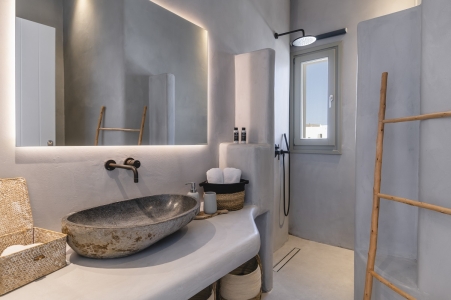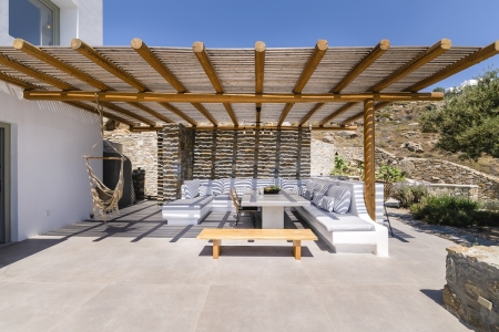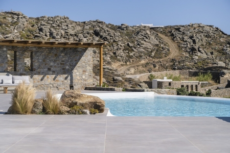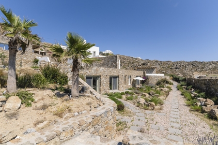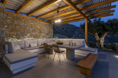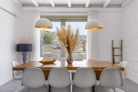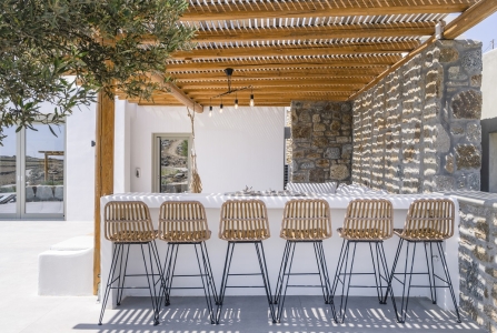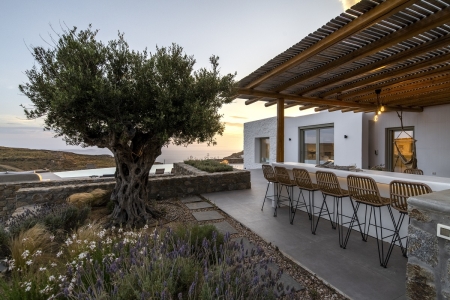 Villa Lia is a brand new villa, which was built in 2019. Nestled in an enchanting landscape idyllically situated in the scenic area of Kastro in the effervescent island of Mykonos. The property extends on a large plot of 2.260m2 overlooking the western Aegean Sea and Syros island. The villa is 5 minutes from Agios Stefanos beach, enjoying spectacular sunset, sea view, and island views; while it has all the advantages of being in quite and secluded surroundings, just a 8 minute drive from Mykonos town.