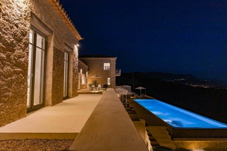 Villa Eri is a luxury retreat for up to 8 guests, designed for those seeking seclusion and tranquility while remaining close to the beautiful beaches of Kardamyli. The property consists of three internally connected stone buildings and includes the Main Villa (sleeping 6) and the Guest Villa (sleeping 2), each with its own independent entrance, spacious living room, fully equipped kitchen, and en-suite bedrooms, offering both privacy and easy flow throughout the property. Perched on the gentle slopes of a hill, it offers panoramic, postcard-like views of the Messinian Sea and the surrounding landscape. With its private infinity pool, elegant alfresco spaces, and refined interiors of minimal, natural design, the villa blends comfort and style in perfect harmony. Located just 4 km (approximately 5 minutes by car) from the picturesque village of Kardamyli.