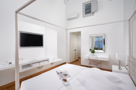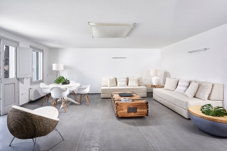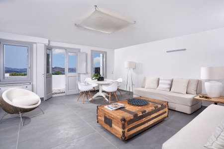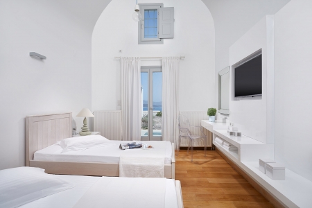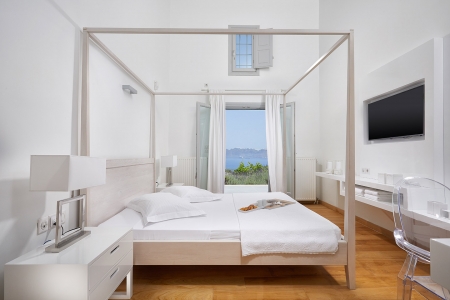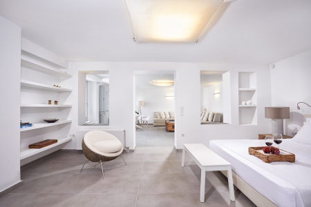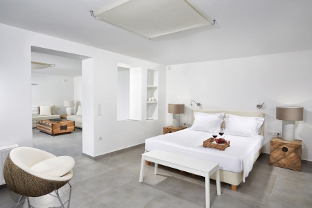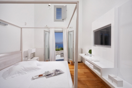 A secluded paradise for the senses, as –surrounded by the shimmering blue of the Aegean Sea– the rolling waves lull you to sleep as they lap on the rocky shore beneath, snug in the gentle embrace of the island breeze and the seagulls’ echoing chant, a music that travels you far away to a dream-like state of relaxation.