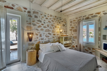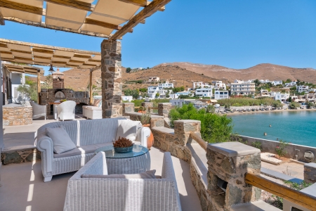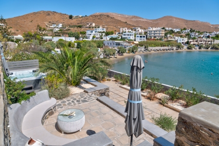The small house built in the sixties by the retired mariner on the bay of Megas Gialos, was built as a holiday residence of 160 square meters, combining luxury with simplicity, guarantees you the most beautiful summer memories, right by the sea . Situated on the beach of Megas Gialos and totally harmonized in the natural environment providing full privacy, it is equipped with all the modern comforts and directly accessible from the main road network of the island.